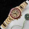 Bộ sưu tập: Cosmograph Daytona. Xuất xứ: Hong Kong. Bộ máy: Thụy sĩ. Kích thước: 40 mm. Kính: Sapphire. Chất liệu: Bọc vàng 18K, Kim cương Moissanite, Đá Ruby. Dây đeo: Oyster. Chức năng: Giờ, Phút, Giây, Chronograph. Kháng nước: 100m (10ATM).